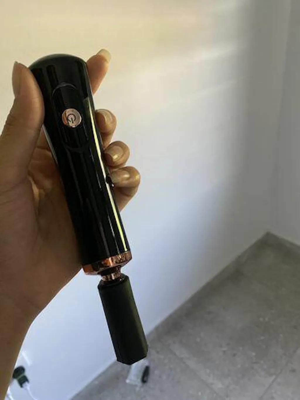 - Insert the shaker into the connector and firmly press the power button.